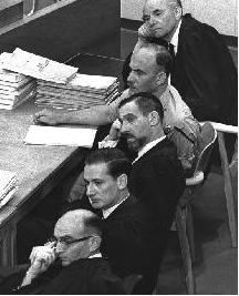 התובעים במשפט אייכמן; משמאל לימין: האוזנר, בך, בר-אור. צילום: לע"ם