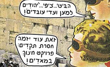 נשוב להווה. לא מזמן נתקלתי בחסידי חב"ד, שהזמינו את העוברים ושבים להניח תפילין. מעל לראשיהם התנוסס שלט פרסום גדול של חברת כוח-אדם, אחת מאותן חברות המייצרות שוק עבדים מודרני. בהבזק אחד, בשאון רחוב ירושלמי ביום חול, התבהרו לנגד עיניי ההזדמנות והחמצה.